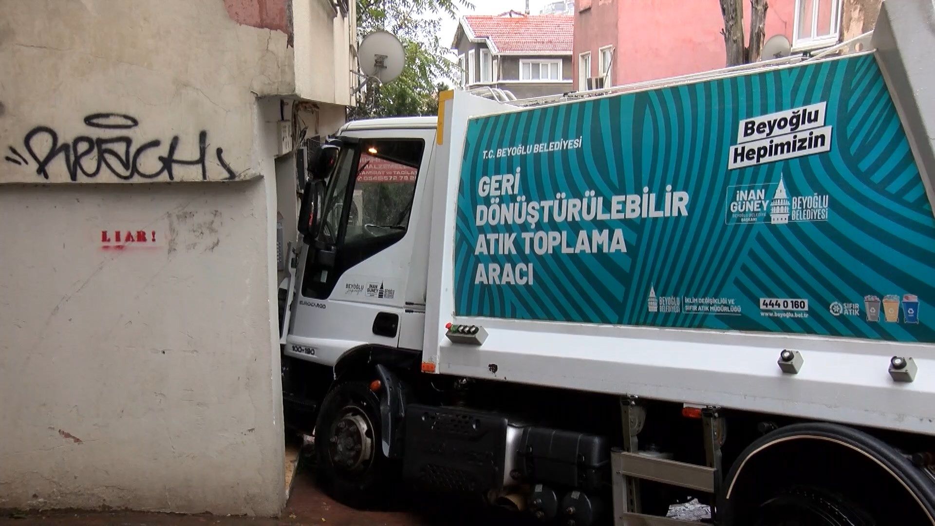 İstanbul Beyoğlu’nda yağmur nedeniyle kayganlaşan yolda bir çöp kamyonu kontrolden çıkarak park halindeki 5 araca ve ardından bir evin duvarına çarptı. Kazada, şoför ile kamyondaki 2 işçi yaralandı ve sağlık ekipleri tarafından hastaneye kaldırıldı.